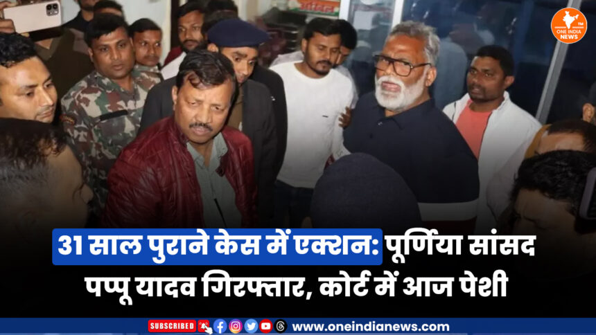 बिहार के पूर्णिया से लोकसभा सांसद राजेश रंजन उर्फ पप्पू यादव को पटना पुलिस ने शुक्रवार (6 फरवरी 2026) देर रात करीब 12 बजे गिरफ्तार कर लिया। यह कार्रवाई 31 साल पुराने मामले में विशेष अदालत द्वारा जारी गिरफ्तारी आदेश के बाद की गई। अदालत ने न्यायिक प्रक्रिया में अनुपस्थिति को गंभीर मानते हुए सख्त रुख अपनाया था, जिसके बाद पुलिस ने उनके मंदिरी स्थित आवास पर पहुंचकर कार्रवाई की।