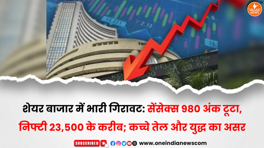 ग्लोबल मार्केट में बढ़ते तनाव और कच्चे तेल की कीमतों में तेज उछाल के बीच गुरुवार, 12 मार्च को भारतीय शेयर बाजार में बड़ी गिरावट देखने को मिली। बाजार खुलते ही दोनों प्रमुख सूचकांक BSE Sensex और Nifty 50 भारी दबाव में आ गए और लाल निशान में ट्रेड करने लगे।