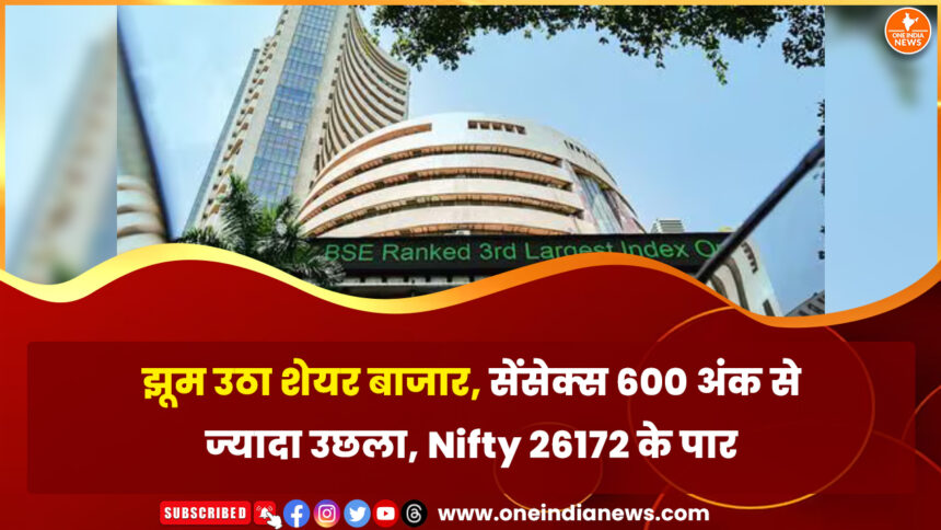 क्रिसमस से पहले शेयर बाजार ने निवेशकों को शानदार तोहफा दिया है। सप्ताह की शुरुआत में ही भारतीय शेयर बाजार मजबूती के साथ बंद हुआ। सोमवार को बीएसई सेंसेक्स 638.12 अंकों की बढ़त के साथ 85,567.48 पर बंद हुआ, जबकि एनएसई निफ्टी 206 अंकों से ज्यादा चढ़कर 26,172.40 के स्तर पर पहुंच गया। शुरुआती कारोबार में भी बाजार में जबरदस्त तेजी देखने को मिली थी। सेंसेक्स 85,300 के ऊपर खुला और करीब 400 अंक चढ़ा, वहीं निफ्टी 9:15 बजे के आसपास 26,000 के स्तर पर खुलकर 100 अंकों से ज्यादा मजबूत हुआ।