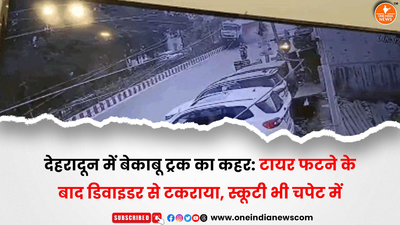 उत्तराखंड की राजधानी Dehradun में तेज रफ्तार का खतरनाक मंजर देखने को मिला, जब एक ट्रक अचानक अनियंत्रित होकर डिवाइडर से टकरा गया। इस हादसे में सामने से आ रही एक स्कूटी भी ट्रक की चपेट में आ गई, जिसके ब...