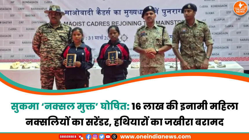 मंगलवार (31 मार्च 2026) को सुकमा पुलिस अधीक्षक (SP) ने जानकारी दी कि कंपनी नंबर 8 की दो इनामी महिला नक्सलियों के आत्मसमर्पण के बाद जिले में नक्सल प्रभाव पूरी तरह खत्म हो गया है।