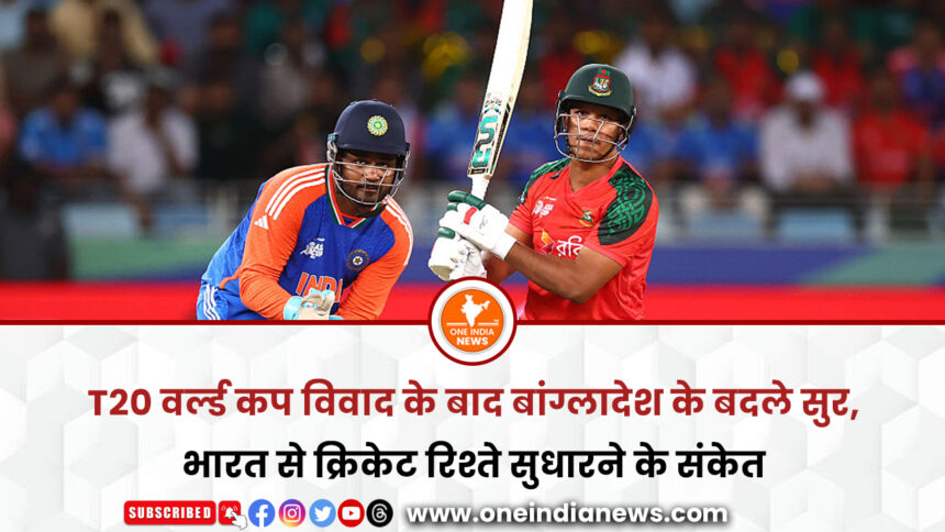 टी20 विश्व कप खेलने के लिए भारत न आने के फैसले के बाद अंतरराष्ट्रीय क्रिकेट से बाहर हुए बांग्लादेश ने अब भारत के साथ रिश्ते सुधारने के संकेत दिए हैं। नई सरकार के गठन के तुरंत बाद बांग्लादेश के युवा एवं खेल राज्य मंत्री अमीनुल हक ने कहा कि भारत के साथ क्रिकेट और कूटनीतिक संबंधों को सामान्य करने की दिशा में प्रयास शुरू किए जाएंगे।