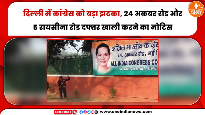 राष्ट्रीय राजधानी दिल्ली में Indian National Congress को बड़ा झटका लगा है। पार्टी को उसके पुराने मुख्यालय 24 Akbar Road को खाली करने का नोटिस मिला है।