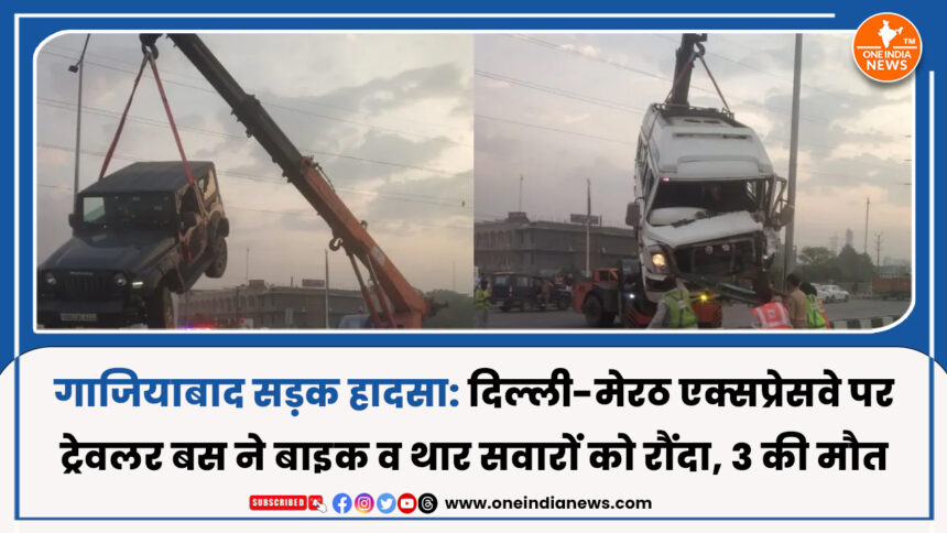 जानकारी के अनुसार, दिल्ली से मेरठ जाने वाली मुख्य लेन पर एक थार गाड़ी खड़ी थी। इसी दौरान कार से उतरकर दो युवक एक बाइक सवार से बात कर रहे थे। तभी पीछे से तेज रफ्तार में आ रही एक टेंपो ट्रैवलर बस ने तीनों को जोरदार टक्कर मार दी।