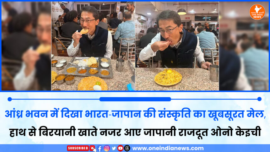 राजधानी दिल्ली स्थित आंध्र भवन में हाल ही में एक दिलचस्प और दिल छू लेने वाला नज़ारा देखने को मिला, जब भारत में जापान के राजदूत ओनो केइची कैंटीन में परोसी गई बिरयानी को चम्मच-कांटे की बजाय भारतीय परंपरा के अनुसार हाथ से खाते नजर आए। जैसे ही उन्होंने यह देसी अंदाज़ अपनाया, वहां मौजूद लोगों के चेहरे पर मुस्कान फैल गई और किसी ने इस खास पल को कैमरे में कैद कर लिया।