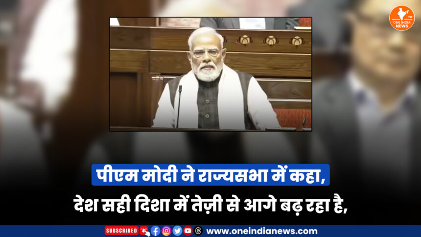 राज्यसभा में राष्ट्रपति के अभिभाषण पर धन्यवाद प्रस्ताव पर चर्चा के दौरान प्रधानमंत्री नरेंद्र मोदी ने देश की प्रगति पर प्रकाश डाला। विपक्ष की लगातार नारेबाजी के बीच पीएम मोदी ने कहा कि भारत विकसित राष्ट्र बनने की दिशा में तेज़ गति से आगे बढ़ रहा है। उन्होंने बताया कि पिछले साल देश के विकास के लिहाज से महत्वपूर्ण रहा और यह जीवन के हर क्षेत्र में सकारात्मक बदलाव का दौर रहा।