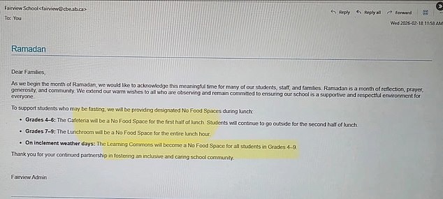 स्कूल प्रशासन ने Ramadan के दौरान रोजा रखने वाले छात्रों के सम्मान के नाम पर कैफेटेरिया में खाने पर प्रतिबंध लगा दिया है।