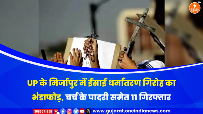 उत्तर प्रदेश के मिर्जापुर जिले में अवैध धर्मांतरण के एक बड़े रैकेट का खुलासा हुआ है। देहात कोतवाली पुलिस ने खरहरा गाँव स्थित एक चर्च में छापेमारी कर प्रलोभन देकर हिंदू परिवारों का ईसाई धर्म में धर्मांतरण कराने के आरोप में 11 लोगों को गिरफ्तार किया है। गिरफ्तार आरोपितों में चर्च का पादरी भोलानाथ पटेल और उसकी पत्नी माया पटेल भी शामिल हैं।