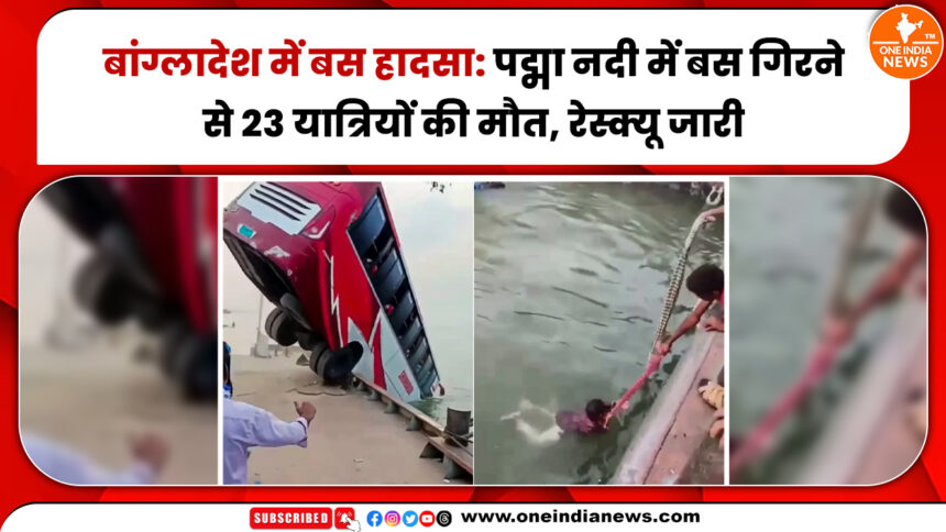 बांग्लादेश में बुधवार शाम लगभग 5.15 बजे एक भयानक बस हादसा हुआ। पद्मा नदी के पास 40 यात्रियों से भरी बस संतुलन खोकर सीधे नदी में गिर गई। हादसे में अब तक 23 यात्रियों की मौत हो चुकी है और कई लोग अभी भी लापता हैं।