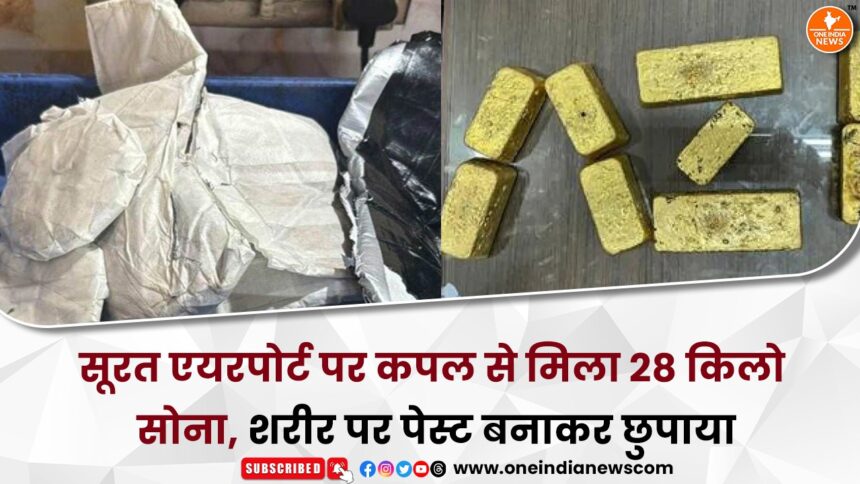 गुजरात के सूरत हवाई अड्डे पर एक चौंकाने वाला मामला सामने आया है, जहाँ एक दंपती के पास से 28 किलोग्राम से अधिक सोना बरामद किया गया। यह घटना शनिवार, 19 जुलाई 2025 की है जब पति-पत्नी दुबई से लौटे थे। दोनों ने तस्करी के इरादे से सोने को पेस्ट के रूप में तैयार कर शरीर के अलग-अलग हिस्सों पर छिपा रखा था। रिपोर्ट के अनुसार, यह दंपती गुजरात का ही रहने वाला है।