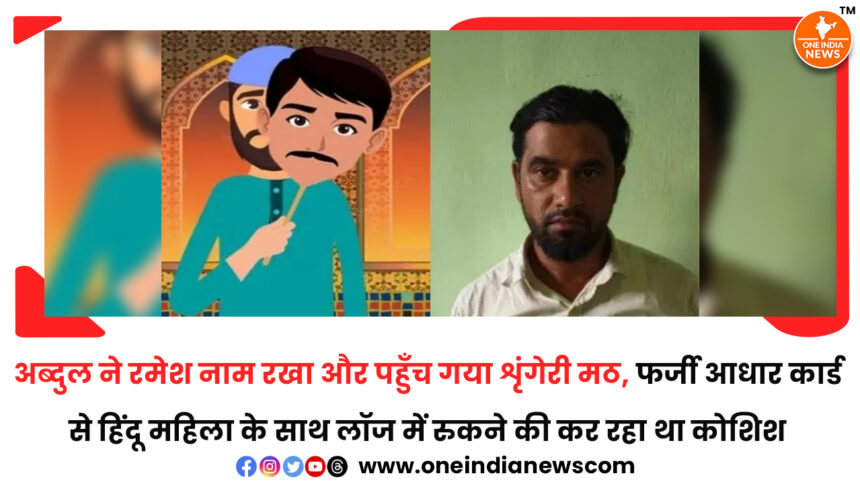 कर्नाटक के चिकमंगलूर जिले से एक चौंकाने वाला मामला सामने आया है। शृंगेरी कस्बे में एक मुस्लिम युवक अब्दुल समद ने अपनी पहचान छिपाने के लिए नाम बदलकर रमेश रख लिया और इसी नाम से फर्जी आधार कार्ड भी बनवा लिया। इसी आधार कार्ड का इस्तेमाल करते हुए वह एक हिंदू महिला के साथ मठ के लॉज में ठहरने की कोशिश कर रहा था।