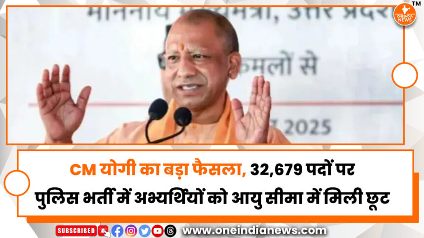 उत्तर प्रदेश के मुख्यमंत्री योगी आदित्यनाथ ने युवाओं के हित में बड़ा फैसला लेते हुए यूपी पुलिस और जेल विभाग की सीधी भर्ती में आयु सीमा में छूट देने की घोषणा की है। इस फैसले के तहत अभ्यर्थियों को अधिकतम आयु सीमा में 3 वर्ष की छूट दी गई है, जिससे पहले जहां सीमा 22 वर्ष थी, अब उसे बढ़ाकर 25 वर्ष कर दिया गया है। इस संबंध में शासनादेश भी जारी कर दिया गया है।