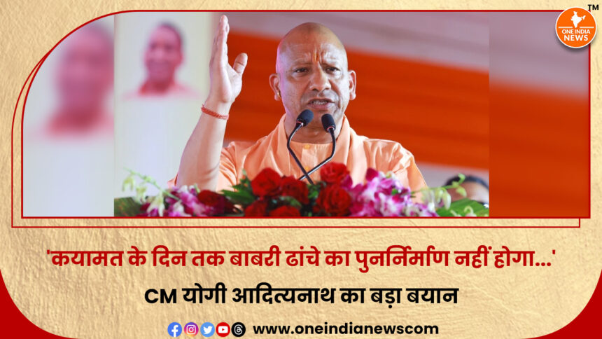 सीएम योगी ने अपने भाषण में कहा कि बाबरी ढांचे का पुनर्निर्माण कभी संभव नहीं है। उन्होंने कहा, “हम आज फिर कह रहे हैं कि कयामत के दिन तक भी बाबरी ढांचे का पुनर्निर्माण नहीं होगा। वैसे भी कयामत का दिन कभी आने वाला नहीं है।” उन्होंने यह भी कहा कि भारत की गौरवशाली परंपरा और सनातन धर्म की विरासत को सम्मान देते हुए देश आगे बढ़ रहा है।