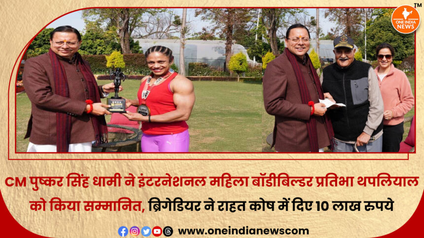 उत्तराखंड के मुख्यमंत्री पुष्कर सिंह धामी ने देहरादून में आयोजित कार्यक्रम के दौरान इंटरनेशनल महिला बॉडीबिल्डर प्रतिभा थपलियाल को सम्मानित किया। मुख्यमंत्री ने उन्हें शॉल और पौधा भेंट कर उनके उत्कृष्ट प्रदर्शन और राज्य का नाम अंतरराष्ट्रीय स्तर पर रोशन करने के लिए बधाई दी।