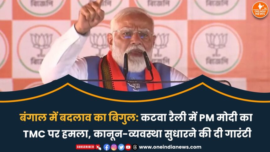 प्रधानमंत्री नरेंद्र मोदी ने शनिवार (11 अप्रैल 2026) को पश्चिम बंगाल के कटवा में एक विशाल चुनावी रैली को संबोधित किया। इस दौरान उन्होंने राज्य में राजनीतिक बदलाव की बात करते हुए कहा कि “बंगाल अब परिवर्तन के लिए तैयार है।”