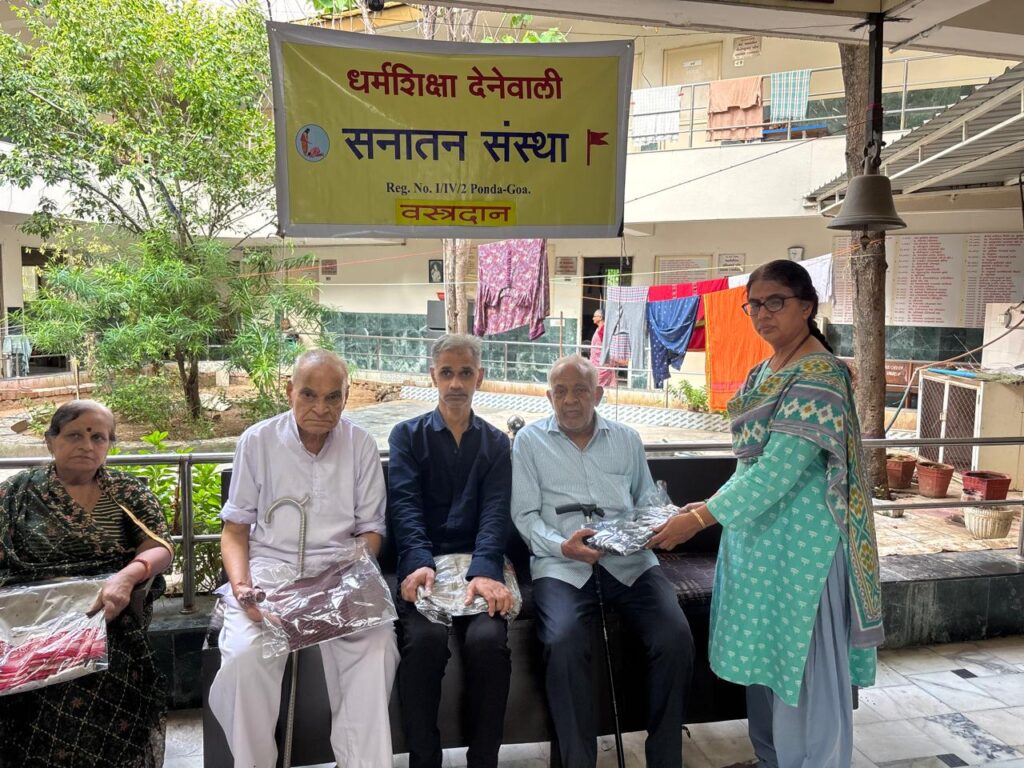 अहमदाबाद के ‘अतितना आशीर्वाद सेवा ट्रस्ट’ द्वारा संचालित वृद्धाश्रम में सनातन संस्था की ओर से वस्त्र वितरण कार्यक्रम का आयोजन किया गया। इस अवसर पर श्री भरतभाई पांचाल, श्रीमती जयश्रीबेन पांचाल, श्रीमती दीपाली ओंकार और श्रीमती मेघाबेन पांचाल ने 50 से अधिक वृद्धजनों को वस्त्र वितरित किए।