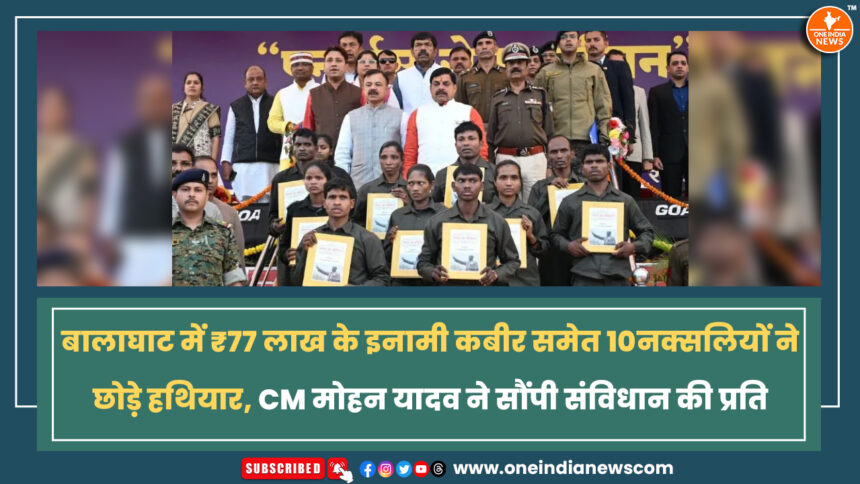 मध्य प्रदेश में केंद्र सरकार के नक्सल-मुक्त अभियान को बड़ी सफलता मिली है। बालाघाट जिले में कान्हा–भोरमदेव (केबी) डिवीजन के 10 माओवादियों ने आत्मसमर्पण किया। इन माओवादियों ने एके-47 सहित आठ हथियार मुख्यमंत्री मोहन यादव को सौंपे, और बदले में मुख्यमंत्री ने सभी को संविधान की प्रति प्रदान की। आत्मसमर्पण करने वालों में ₹77 लाख का इनामी माओवादी सुरेंद्र उर्फ कबीर भी शामिल है।
