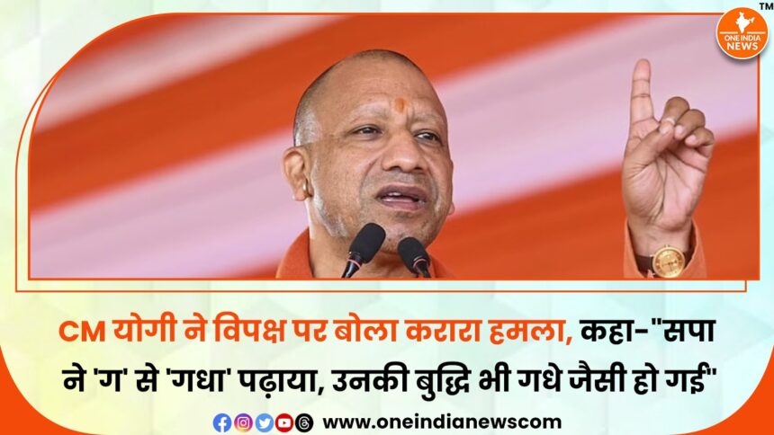 मुख्यमंत्री योगी आदित्यनाथ ने मुरादाबाद में एक जनसभा को संबोधित करते हुए समाजवादी पार्टी (सपा) पर तीखा हमला बोला और शिक्षा से लेकर प्रदेश की कानून व्यवस्था तक, कई मुद्दों पर सपा को घेरा। उन्होंने कहा कि भारतीय जनता पार्टी (भाजपा) की सरकार ने बच्चों को संस्कारों से जोड़ते हुए पाठ्यक्रम में ‘ग’ से ‘गणेश’ पढ़ाना शुरू किया था, लेकिन समाजवादी पार्टी की सरकार ने उसका विरोध करते हुए कहा कि ‘ग’ से ‘गणेश’ नहीं बल्कि ‘ग’ से ‘गधा’ होता है। योगी आदित्यनाथ ने इसे सपा की सोच और संस्कारों पर सवाल उठाते हुए कहा कि यही कारण है कि उनकी बुद्धि भी गधे जैसी हो गई है।