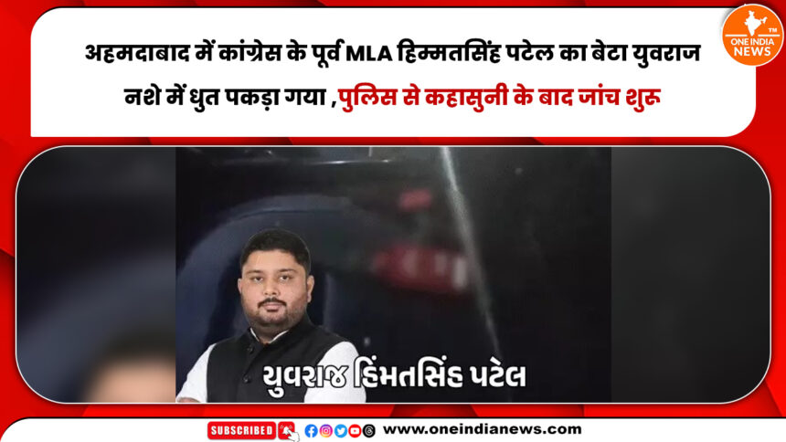 कांग्रेस के पूर्व MLA और पूर्व शहर अध्यक्ष हिम्मतसिंह पटेल का बेटा कल (22 मार्च) रात अहमदाबाद में नशे में धुत पकड़ा गया। हिम्मतसिंह पटेल के बेटे युवराज की नशे में पुलिस से बहस भी हुई, जिसके बाद युवराज और उसके दोस्त को माधवपुरा पुलिस स्टेशन ले जाया गया। युवराज के खिलाफ अभी तक कोई केस दर्ज नहीं किया गया है।