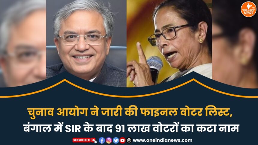 Election Commission of India (ECI) ने पश्चिम बंगाल विधानसभा चुनाव 2026 से पहले फाइनल वोटर लिस्ट जारी कर दी है। स्पेशल इंटेंसिव रिविज़न (SIR) प्रक्रिया के बाद इस सूची से करीब 91 लाख मतदाताओं के नाम हटाए गए हैं।