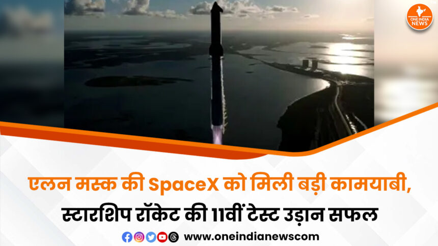 एलन मस्क की कंपनी स्पेसएक्स ने एक और बड़ी सफलता हासिल की है। सोमवार को उसके विशाल स्टारशिप रॉकेट की 11वीं टेस्ट उड़ान सफल रही। इसने पिछली बार की तरह ही दुनिया के आधे हिस्से का सफलतापूर्वक चक्कर लगाया। बता दें कि स्टारशिप अब तक का सबसे बड़ा और सबसे शक्तिशाली रॉकेट माना जा रहा है। इस रॉकेट ने टेक्सास के दक्षिणी सिरे से आकाश में गर्जना के साथ उड़ान भरी। इसके कुछ ही देर बाद बूस्टर रॉकेट अलग हो गया और प्लान के मुताबिक मेक्सिको की खाड़ी में नियंत्रित रूप से दाखिल हुआ। वहीं, मुख्य रॉकेट ने अंतरिक्ष में घूमते हुए अपने सभी लक्ष्यों को सफलतापूर्वक पूरा किया और लगभग एक घंटे की उड़ान के बाद हिंद महासागर में सुरक्षित स्प्लैशडाउन किया।