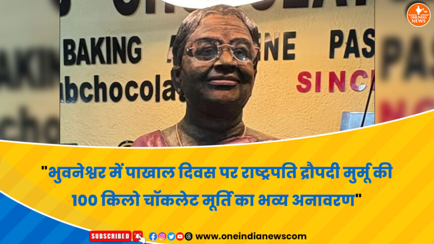 “भुवनेश्वर में पाखाल दिवस के अवसर पर राष्ट्रपति द्रौपदी मुर्मू की 100 किलो चॉकलेट से बनी भव्य मूर्ति का अनावरण। शेफ राकेश साहू और 15 कलाकारों ने आदिवासी जड़ों और संघर्ष का अद्भुत चित्रण किया। मूर्ति बाद में चॉकलेट म्यूजियम में प्रदर्शित होगी।”