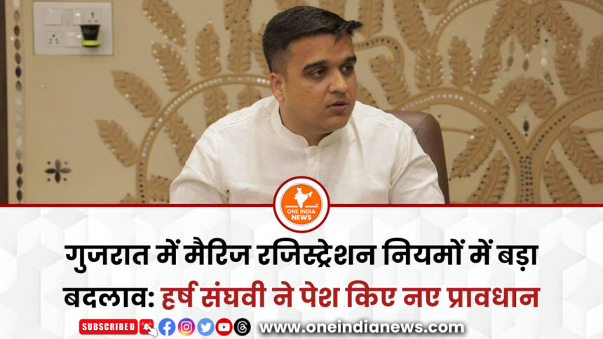 हर्ष संघवी ने विधानसभा में मैरिज रजिस्ट्रेशन प्रक्रिया में व्यापक बदलावों की घोषणा की। उपमुख्यमंत्री और गृह मंत्री ने बताया कि नियम 44 के तहत नया सिस्टम लागू किया जाएगा, जिसका उद्देश्य पारदर्शिता बढ़ाना और बेटियों की सुरक्षा सुनिश्चित करना है।