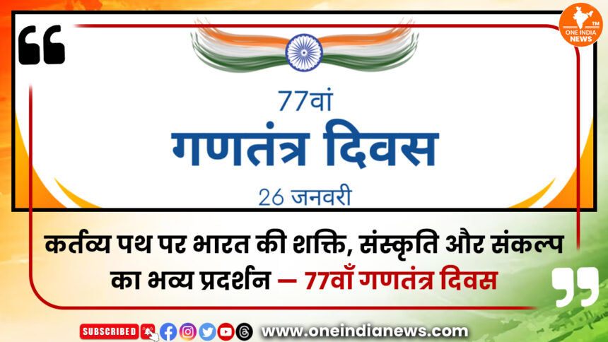 भारत आज 77वाँ गणतंत्र दिवस पूरे गौरव और भव्यता के साथ मना रहा है। कर्तव्य पथ पर आयोजित ऐतिहासिक परेड के माध्यम से देश अपनी विकास यात्रा, सैन्य शक्ति, सांस्कृतिक विविधता और जनभागीदारी की भावना को दुनिया के सामने प्रस्तुत कर रहा है। यह आयोजन भारत के लोकतांत्रिक मूल्यों और राष्ट्रीय एकता का सशक्त प्रतीक बनकर उभरा है।