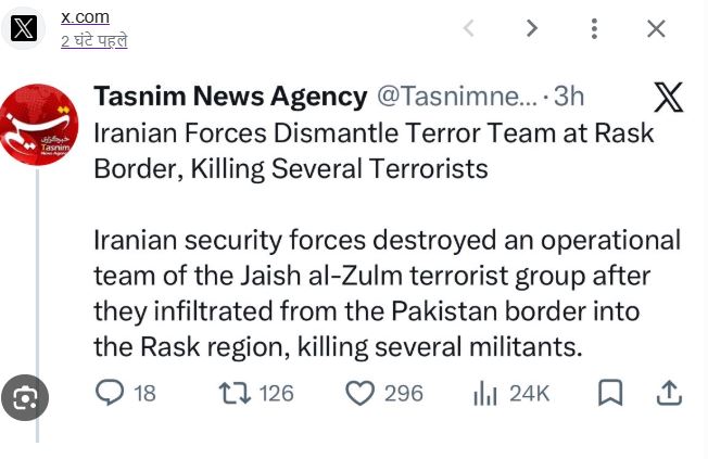 ईरान की सरकारी समाचार एजेंसी Tasnim News Agency के मुताबिक, IRGC ने जैश अल-जुल्म के ऑपरेशनल नेटवर्क को पूरी तरह ध्वस्त कर दिया है। हालांकि, मारे गए आतंकियों की राष्ट्रीयता को लेकर अभी तक आधिकारिक जानकारी सामने नहीं आई है।