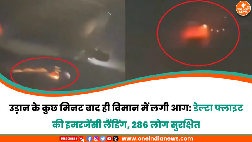 डेल्टा एयर लाइंस की एक अंतरराष्ट्रीय फ्लाइट में उस समय अफरा-तफरी मच गई जब उड़ान भरने के कुछ ही मिनटों बाद विमान के इंजन में आग लग गई।