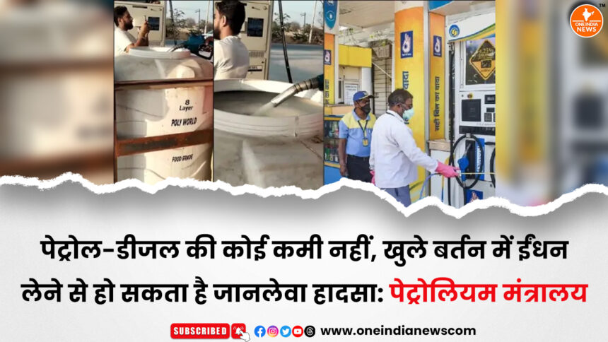 हालांकि, मंत्रालय ने जनता को आगाह किया है कि खुले या असुरक्षित बर्तनों (जैसे बोतल या डिब्बे) में ईंधन लेना और उसे स्टोर करना अत्यंत खतरनाक हो सकता है। हाल ही में तमिलनाडु के एक पेट्रोल पंप द्वारा बोतल में पेट्रोल देने का मामला सामने आया था, जिसके बाद उस पंप को तुरंत सस्पेंड कर दिया गया।