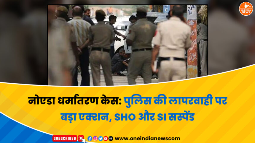 उत्तर प्रदेश के Noida में धर्मांतरण और उत्पीड़न से जुड़े मामले में पुलिस की लापरवाही पर बड़ा एक्शन लिया गया है। Uttar Pradesh Police ने थाना फेज-3 के SHO पुनीत कुमार और सब-इंस्पेक्टर प्रीति गुप्ता को तत्काल प्रभाव से निलंबित कर दिया है। वहीं ACP उमेश यादव के खिलाफ प्रारंभिक जांच शुरू की गई है।
