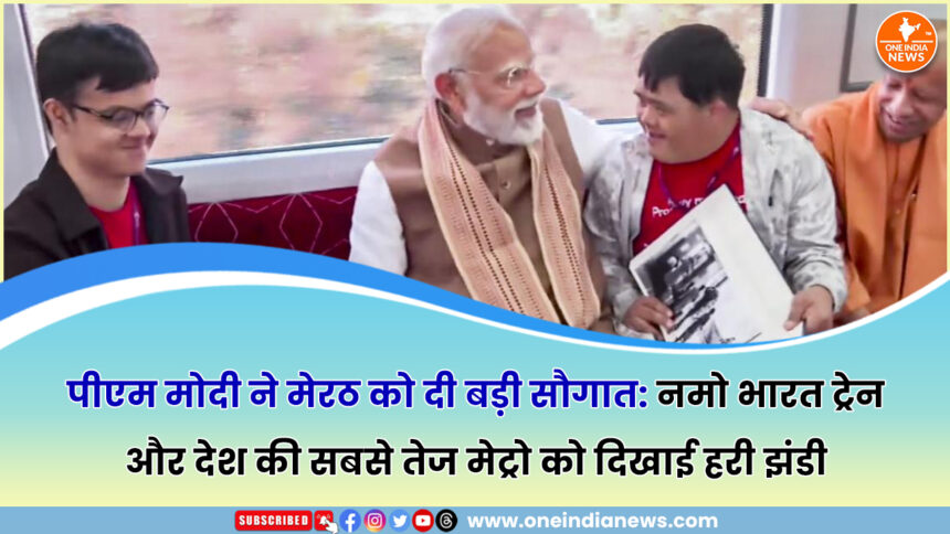 प्रधानमंत्री Narendra Modi ने रविवार को मेरठ के लोगों को बड़ी सौगात देते हुए दिल्ली–मेरठ कॉरिडोर पर Namo Bharat ट्रेन और देश की सबसे तेज मेट्रो को हरी झंडी दिखाकर रवाना किया। इस दौरान उन्होंने मेरठ मेट्रो में सफर किया और छात्रों व उद्यमियों से बातचीत की।