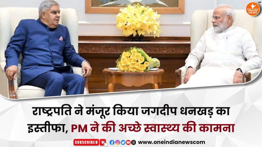 उपराष्ट्रपति जगदीप धनखड़ ने स्वास्थ्य कारणों का हवाला देते हुए अपने पद से इस्तीफा दे दिया, जिसे राष्ट्रपति द्रौपदी मुर्मू ने स्वीकार कर लिया है। राष्ट्रपति को भेजे अपने त्यागपत्र में धनखड़ ने कहा कि वह “स्वास्थ्य देखभाल को प्राथमिकता देने” और चिकित्सीय सलाह के पालन हेतु तत्काल प्रभाव से पद छोड़ रहे हैं। उन्होंने संविधान के अनुच्छेद 67(ए) का उल्लेख करते हुए यह निर्णय लिया।