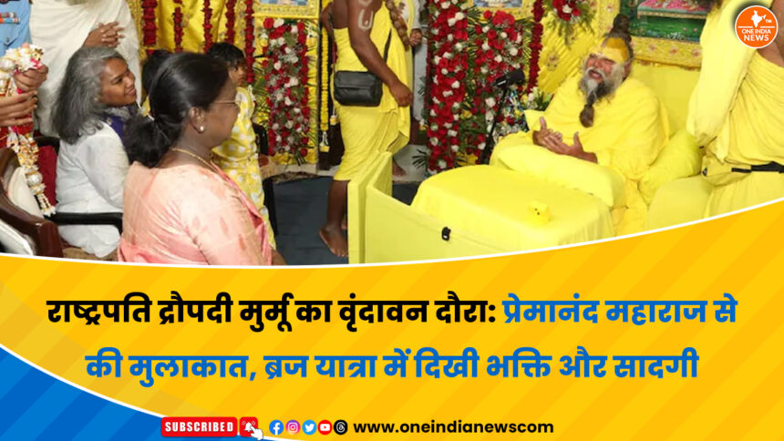 भारत की राष्ट्रपति Droupadi Murmu ने अपने उत्तर प्रदेश दौरे के दौरान Vrindavan में प्रसिद्ध संत Premanand Maharaj से मुलाकात की। शुक्रवार सुबह वह Shri Hit Radha Keli Kunj Ashram पहुंचीं, जहां उन्होंने संत से आशीर्वाद लिया और आध्यात्मिक चर्चा की।