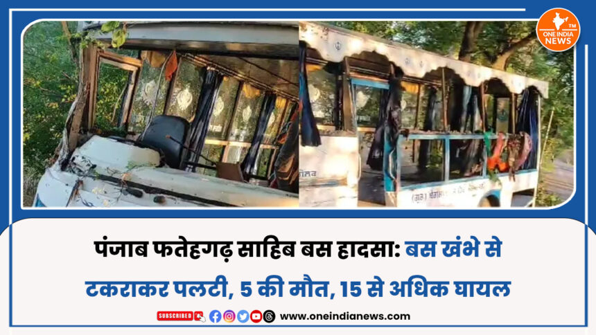पंजाब के फतेहगढ़ साहिब जिले में रविवार को एक भीषण सड़क हादसे ने पूरे इलाके को हिला दिया। बस्सी पठाना के पास एक यात्री बस बिजली के खंभे से टकराकर पलट गई, जिसमें अब तक 5 लोगों की मौत की पुष्टि हुई है, जबकि 15 से अधिक यात्री घायल बताए जा रहे हैं।