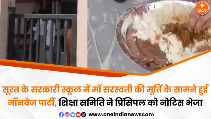 सूरत के गोडादरा शिक्षण समिति के स्कूल में आयोजित एक पूर्व छात्र कार्यक्रम के दौरान नॉनवेज परोसे जाने को लेकर विवाद खड़ा हो गया है। यह कार्यक्रम तेलुगु समाज के पूर्व छात्रों द्वारा आयोजित किया गया था। इस दौरान स्कूल परिसर में मौजूद माँ सरस्वती की मूर्ति को चुनरी से ढक दिया गया, जिससे मामला और संवेदनशील बन गया।