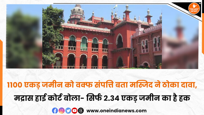 मद्रास हाई कोर्ट ने तमिलनाडु के तिरुनेलवेली की 1100 एकड़ जमीन पर मस्जिद के वक्फ संपत्ति के दावे को खारिज कर दिया है। अदालत ने अपने फैसले में साफ कहा कि मस्जिद को केवल 2.34 एकड़ जमीन का ही अधिकार है, जो वर्ष 1712 में मदुरै के राजा ने दी थी। इस दावे की पुष्टि उस समय की ताँबे की प्लेट (कॉपर प्लेट) से होती है, जिसमें स्पष्ट रूप से जमीन का उल्लेख दर्ज है।