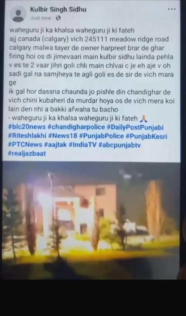 पहली घटना कैलगरी में हुई, जहां एक कारोबारी के घर पर फायरिंग की गई। सोशल मीडिया पर कुलबीर सिंह संधू नाम के व्यक्ति ने इसकी जिम्मेदारी ली और घटना का वीडियो भी साझा किया। उसने दावा किया कि इससे पहले हुई दो अन्य फायरिंग घटनाओं में भी उसका हाथ था।