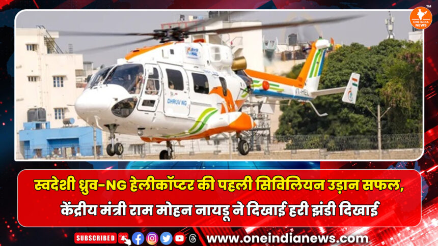 बेंगलुरु में हिंदुस्तान एयरोनॉटिक्स लिमिटेड (एचएएल) द्वारा पूरी तरह स्वदेशी रूप से डिजाइन और निर्मित अगली पीढ़ी के सिविल हेलीकॉप्टर ‘ध्रुव एनजी’ की पहली उड़ान सफलतापूर्वक पूरी कर ली गई। केंद्रीय नागरिक उड्डयन मंत्री राम मोहन नायडू ने इस उद्घाटन उड़ान को हरी झंडी दिखाकर रवाना किया। यह उपलब्धि भारत के विमानन इतिहास में एक गौरवपूर्ण क्षण मानी जा रही है।