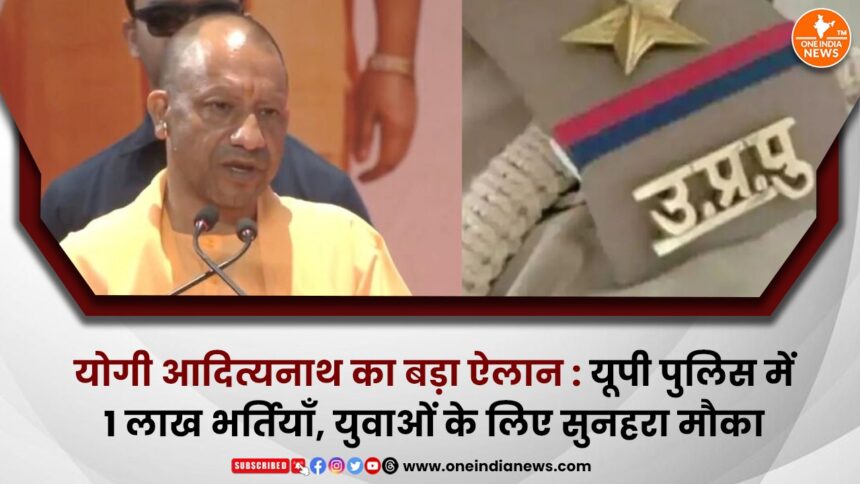 उत्तर प्रदेश के मुख्यमंत्री योगी आदित्यनाथ ने राजधानी लखनऊ में एक बड़ा ऐलान करते हुए कहा है कि राज्य में इस वर्ष यूपी पुलिस में लगभग 1 लाख नई भर्तियाँ की जाएँगी।
