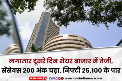 लगातार दूसरे दिन शेयर बाजार में तेजी, सेंसेक्स 200 अंक चढ़ा, निफ्टी 25,100 के पार