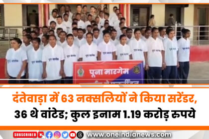 दंतेवाड़ा में 63 नक्सलियों ने किया सरेंडर, 36 थे वांटेड; कुल इनाम 1.19 करोड़ रुपये