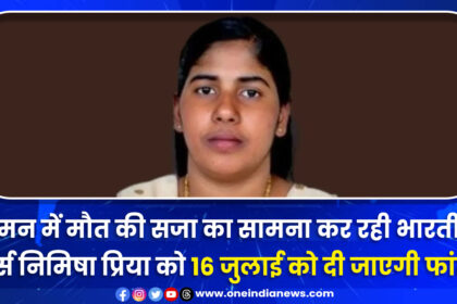 यमन में मौत की सजा का सामना कर रही भारतीय नर्स निमिषा प्रिया को 16 जुलाई को दी जाएगी फांसी