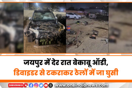 जयपुर में देर रात बेकाबू ऑडी, डिवाइडर से टकराकर ठेलों में जा घुसी
