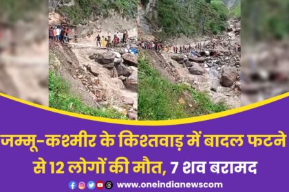 जम्मू-कश्मीर के किश्तवाड़ में बादल फटने से 12 लोगों की मौत, 7 शव बरामद