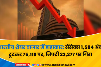 भारतीय शेयर बाजार में हाहाकार: सेंसेक्स 1,584 अंक टूटकर 75,119 पर, निफ्टी 23,277 पर गिरा