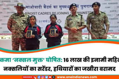 सुकमा ‘नक्सल मुक्त’ घोषित: 16 लाख की इनामी महिला नक्सलियों का सरेंडर, हथियारों का जखीरा बरामद