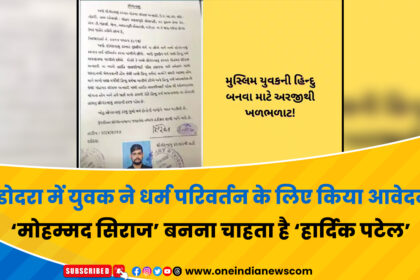 वडोदरा में युवक ने धर्म परिवर्तन के लिए किया आवेदन, ‘मोहम्मद सिराज’ बनना चाहता है ‘हार्दिक पटेल’