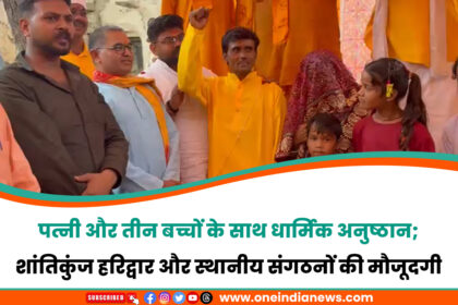 पत्नी और तीन बच्चों के साथ धार्मिक अनुष्ठान; शांतिकुंज हरिद्वार और स्थानीय संगठनों की मौजूदगी